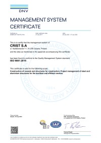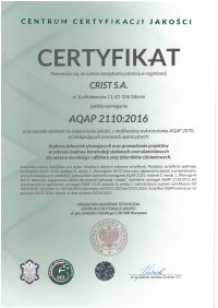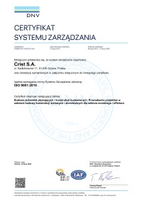 CRIST's production standards and quality are best confirmed by the certificates it has obtained from Polish and international certification bodies.